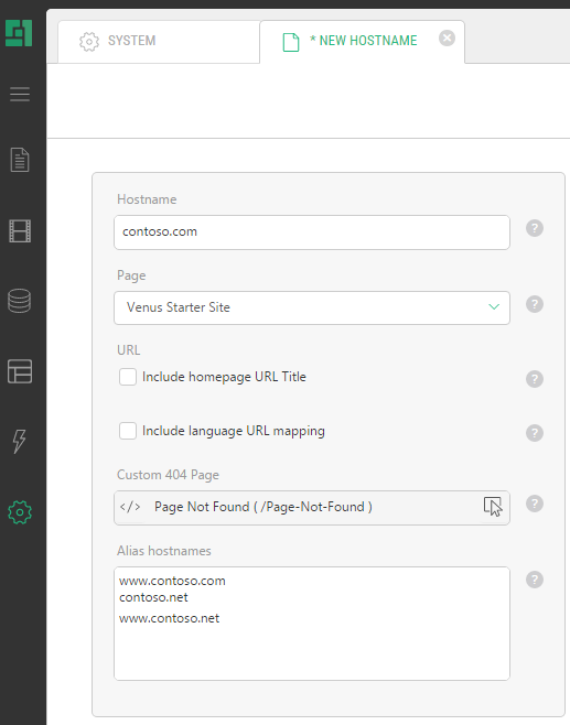 | 1. | In the System module, expand URL Configuration, select Hostnames, and click Add Hostname. |