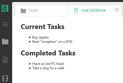 <ReportFunctionAction Label="Task Overview" Tooltip="A quick overview of all the tasks">