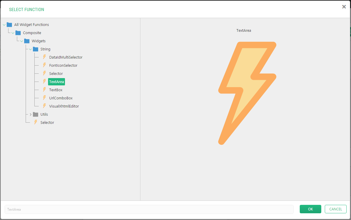 | 3. | Click Set New to open the Select Function window. Here, you will find all the widgets available for this specific field. |
