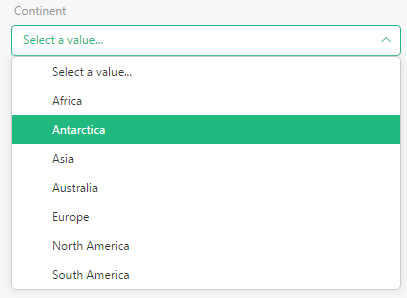The Selector widget displays a list of input values. In most cases, the selector is displayed as a drop-down.