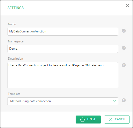 You can also select a namespace in Step 1 and add a function to it. In this case, the namespace will be automatically entered in the Namespace field.