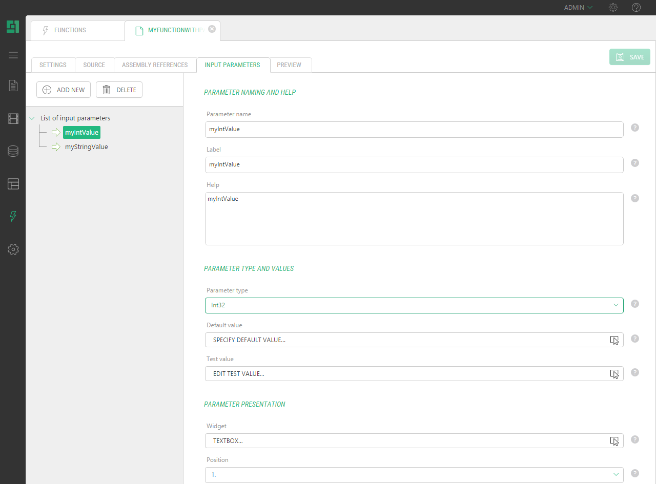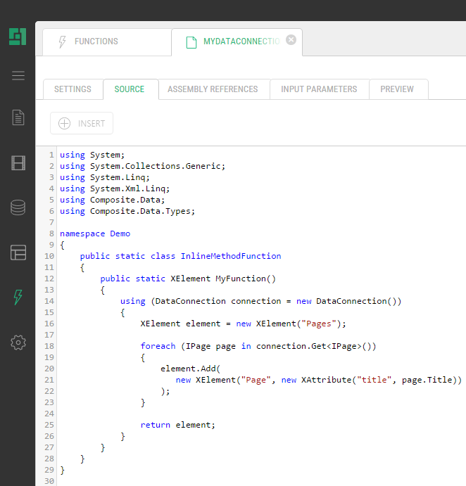 | 1. | In Functions, select C# Functions and click Add InlineC# Function. |