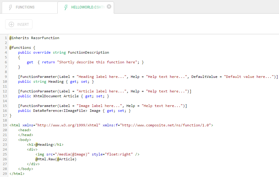 Note. For information about using Visual Studio to create or edit Razor functions, see Creating Razor Functions in Visual Studio.