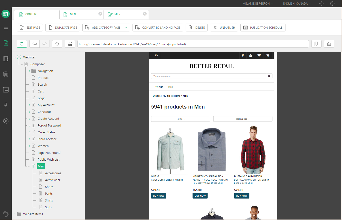 You can also preview pages in different modes. When websites are responsive, they are displayed in a different format depending on the device used by the customer.