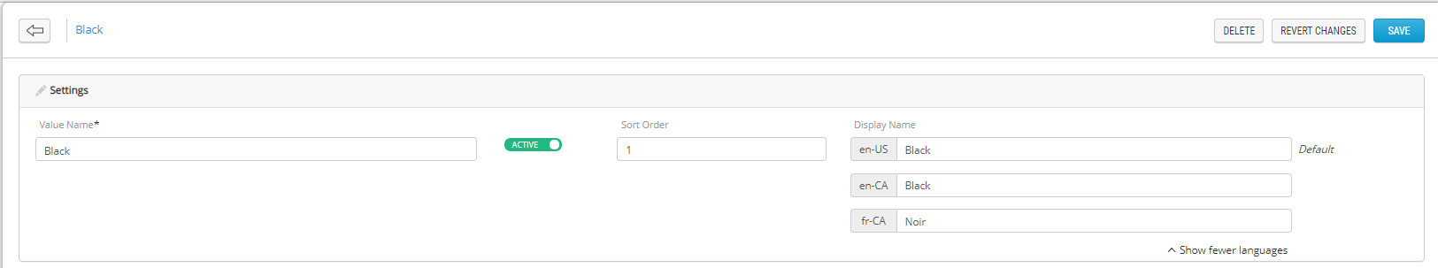 Note: When a multilingual (language-culture) field is left empty, it falls back to the default language value. If no display name value are available, the Lookup Name is used as a display name for all languages. It is essential to configure these values because they may be visible on your website.