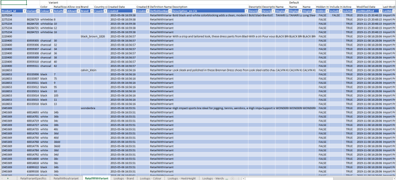 | 2. | Use the Excel file format when you want to export your product catalog (either global or by scope), so that a product manager can view and manage all of the product catalog information in an excel file. Each tab in the Excel file either represents a list of products by product definition or a list of lookup values by lookup name. |