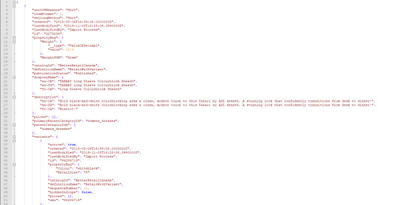The export process creates a compressed (Zipped) file in the following format: ExportProducts_20191117_135431 that contains .JSON files.