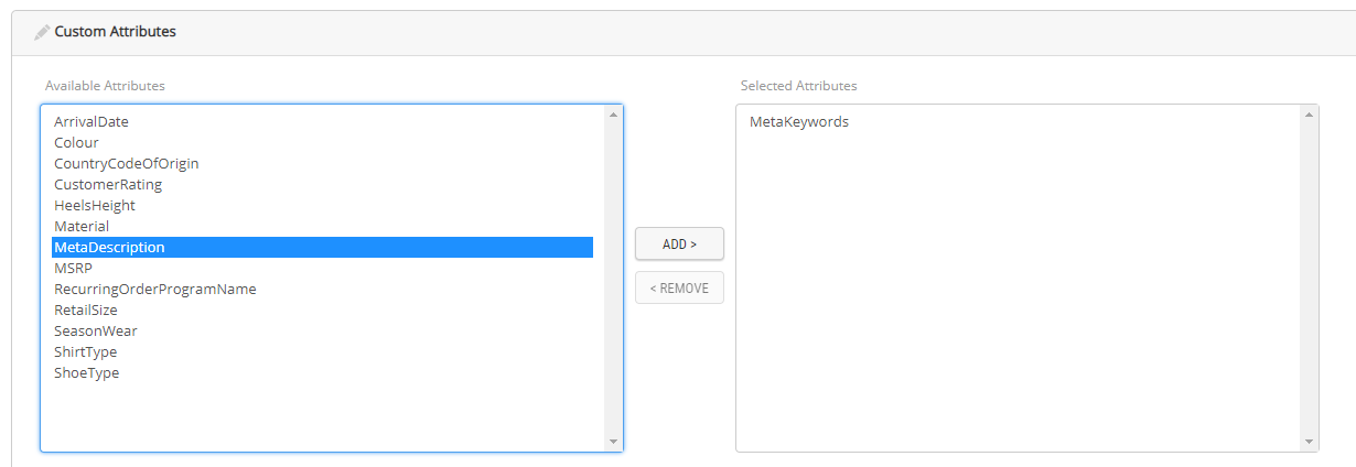 To remove an attribute, select an attribute in the Selected Attributes column and click Remove. |