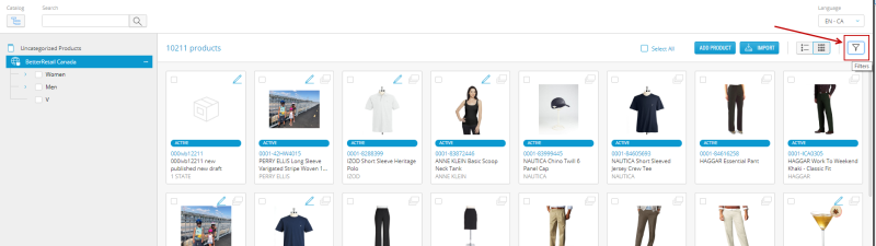 With publication rights, you can publish or reject products that have been created or modified. Since catalogs can be voluminous, filters can help you narrow down the products that require you attention. Contributors can also use product filters to