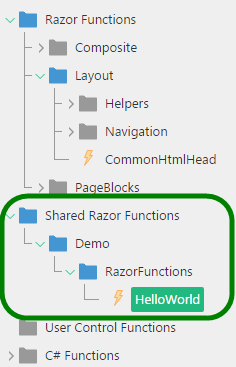 A new functions node will appear in the Functions perspective with the Razor Functions from a different folder.