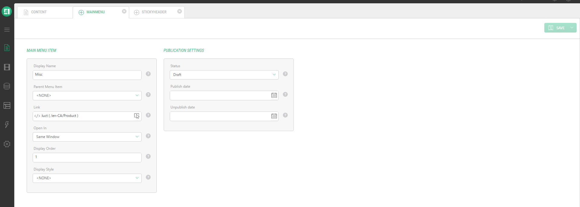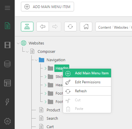 Main menu items are elements that are displayed in the navigation of your website. In Experience Management, we support 3 menu levels.