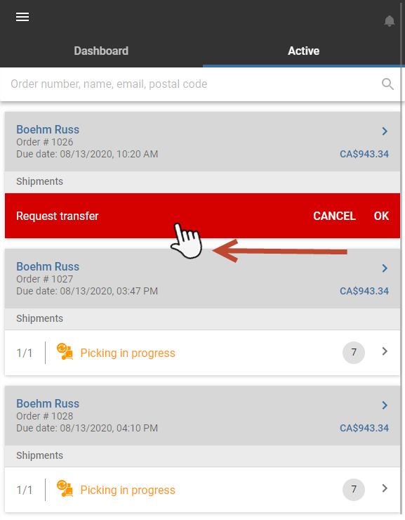| 1. | When the customer drops by to pick up their purchases, locate the shipment in the Active tab. |