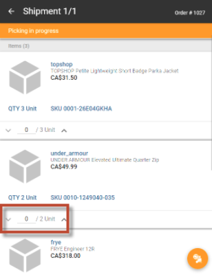 | 1. | Tap the orange action button to begin picking. |
