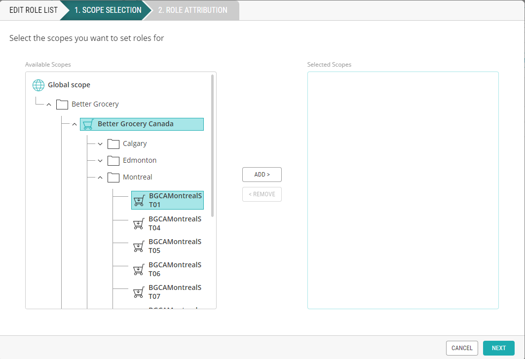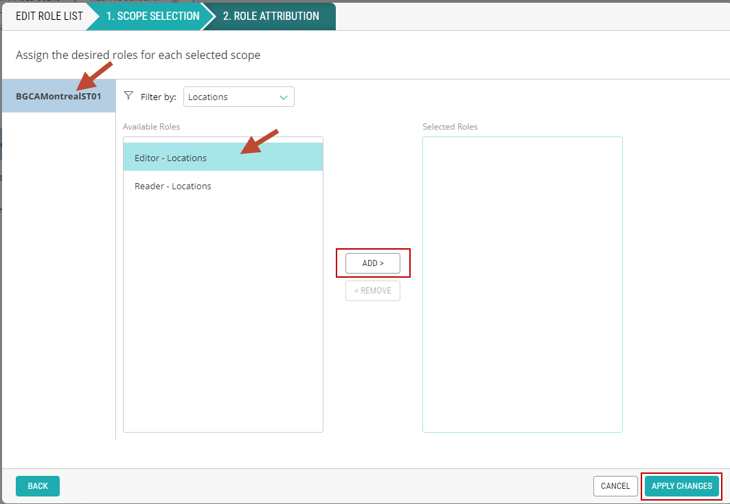 For the specified scope, select Editor -Locations or Reader - Location and click Add. |